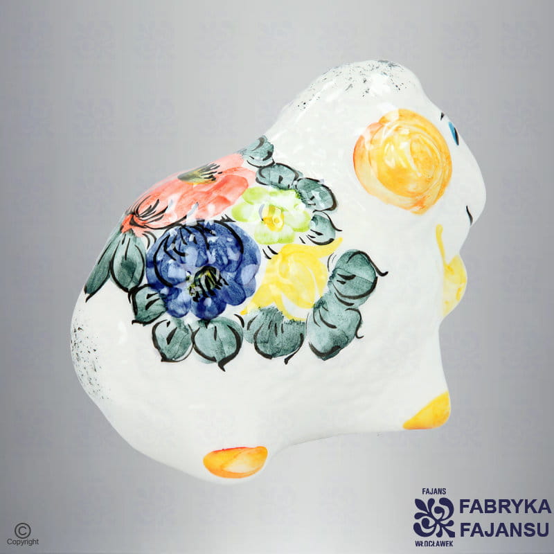 Figurka Baranek H 9 Mak Ozdobiona bukietem kwiatów z czerwonym makiem w roli głównej.