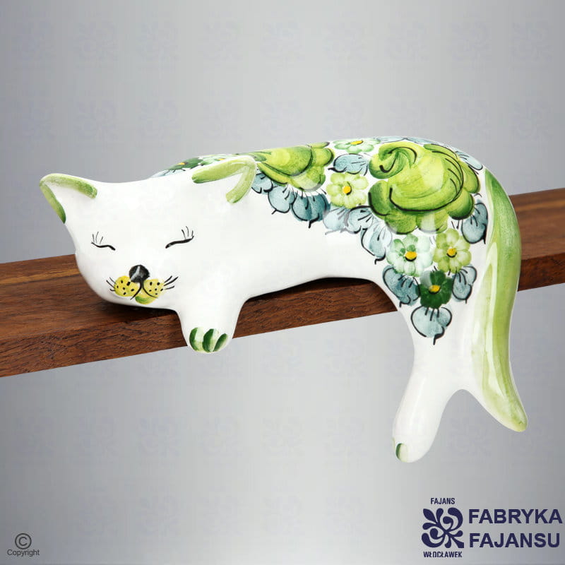 Figurka Kot Leżący Zieleń Ozdobiony klasycznym, kwiatowym wzorem w kolorze: zieleń.