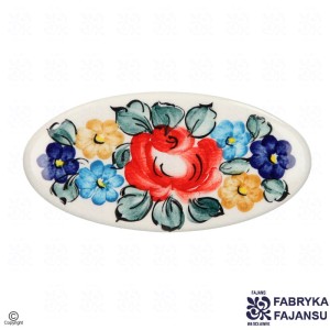 Magnes Owal Kolor Ozdobiony klasycznym, kwiatowym wzorem w wielobarwnej kolorystyce.