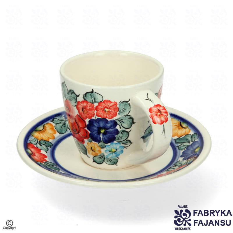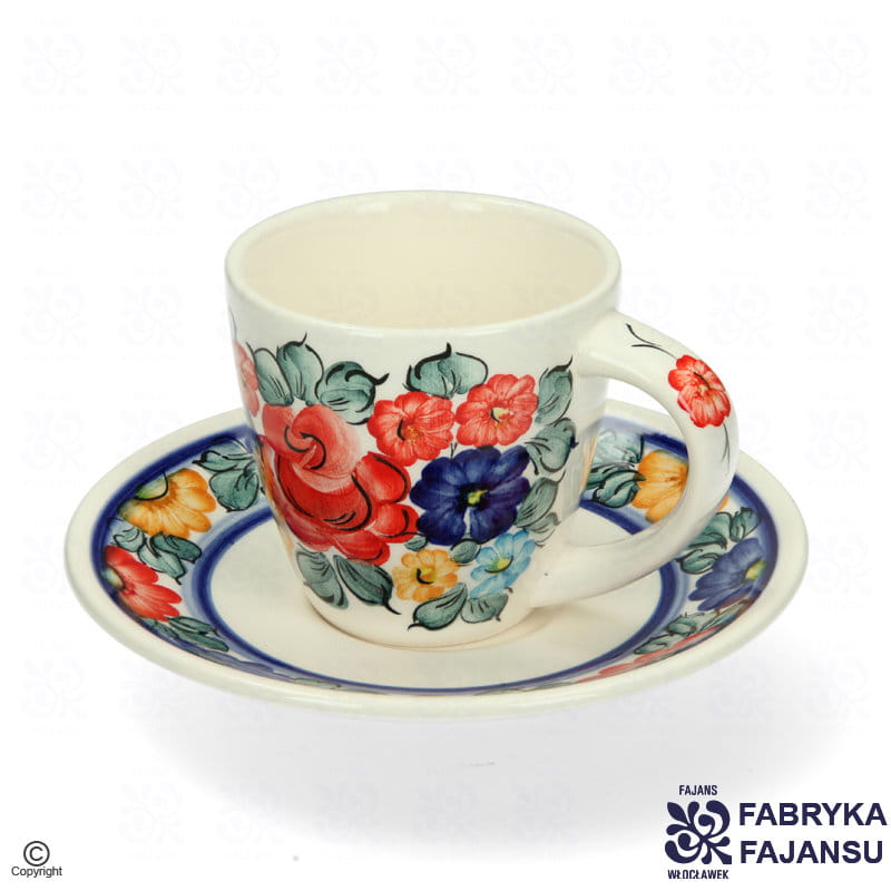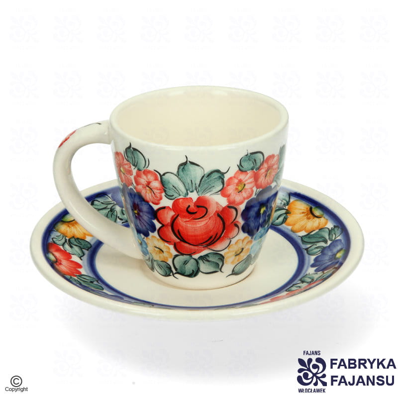 Filiżanka Espresso Mika 100 ml Kolor Fajans Włocławek Ozdobiona klasycznym, kwiatowym wzorem w wielobarwnej kolorystyce.