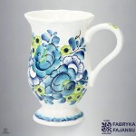 Kubek Dama Alicja Wiosna Ozdobiony klasycznym, kwiatowym wzorem w kolorze: błękitu i pistacji.