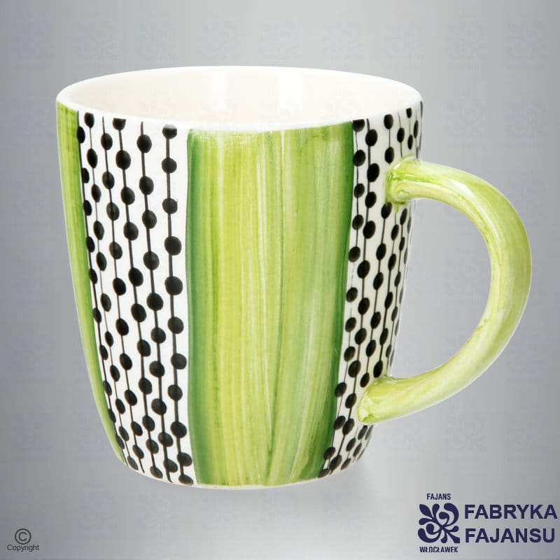 Kubek Miko Pistacja Wzór kubka został zaprojektowany przez naszą malarkę Grażynkę. Niecodzienny design, który jest jednocześnie minimalistyczny i oryginalny. Przeważa tu kolor pistacjowy z elementami czerni.