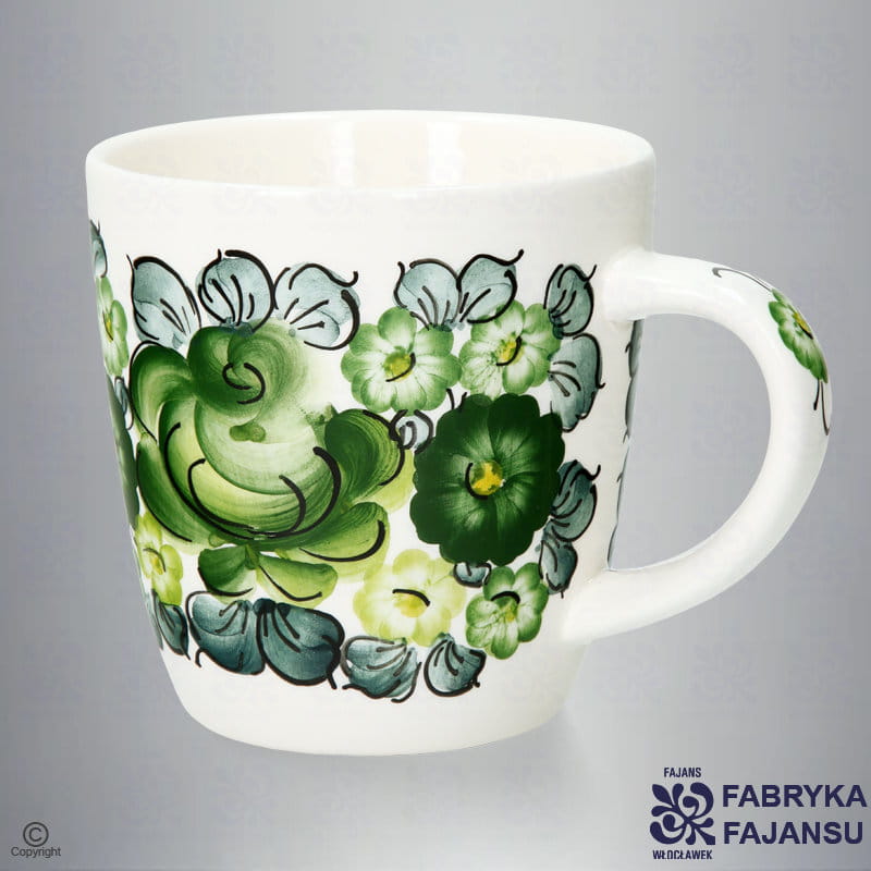 Kubek Miko Zieleń Ozdobiony klasycznym, kwiatowym wzorem w kolorze: zieleń.