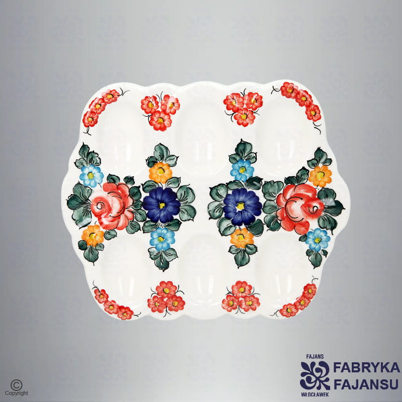Patera do Jaj z Reliefem Kolor Ozdobiona klasycznym, kwiatowym wzorem w wielobarwnej kolorystyce.
